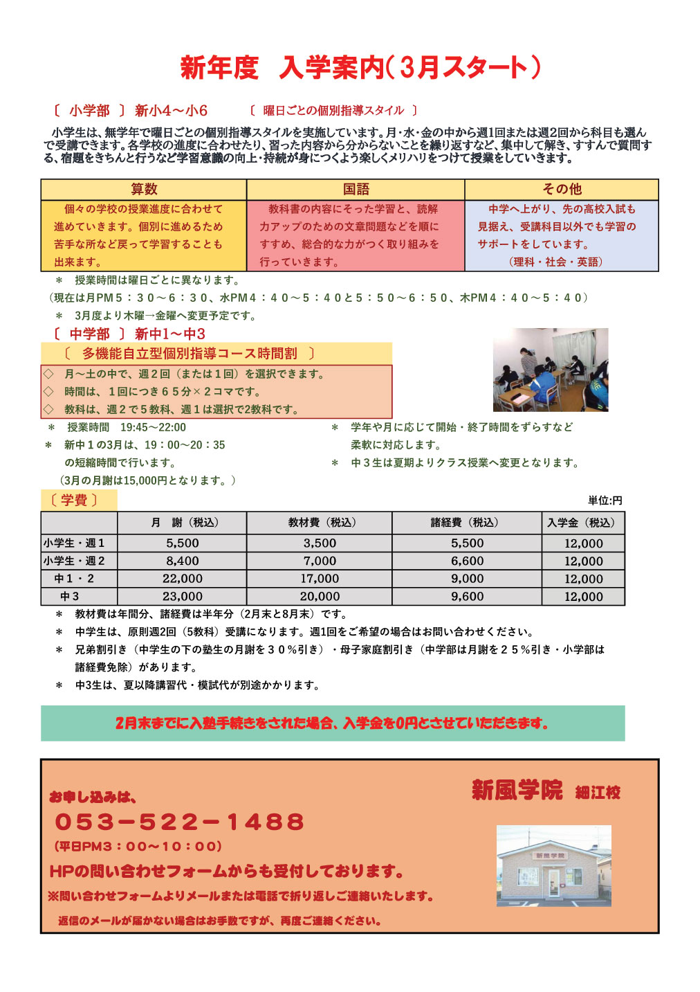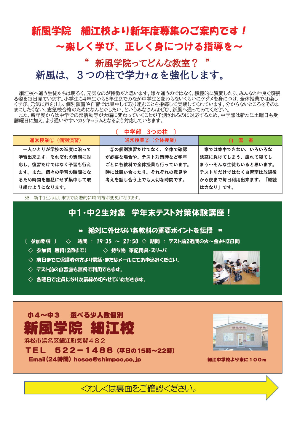 TOP >  細江校からのお知らせ >  2026年度 指導案内・カリキュラム・生徒募集